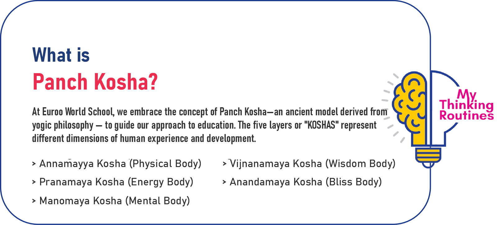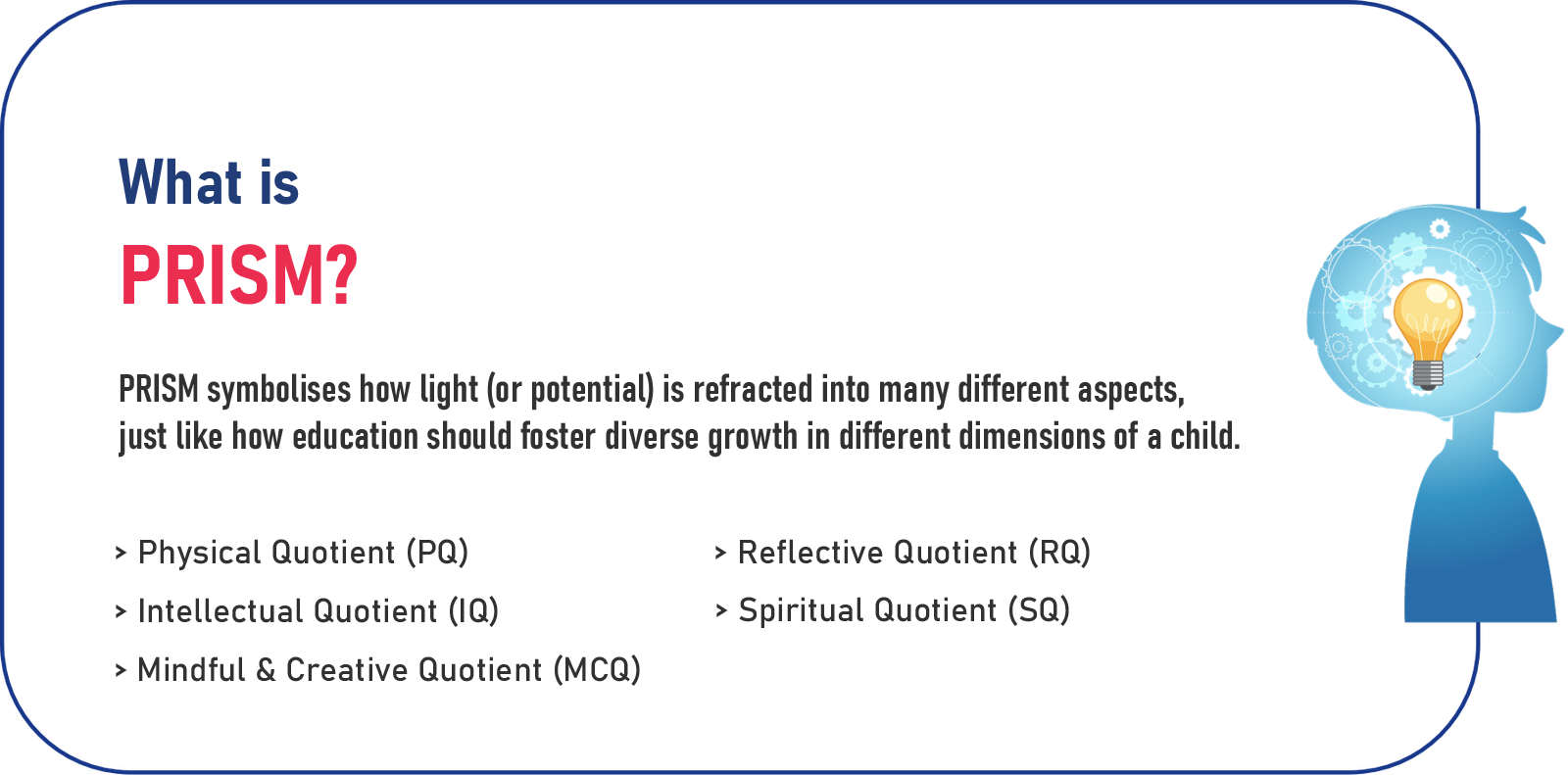 Guided by the ancient Indian wisdom of Panch Kosha the five layers of human development—and the modern PRISM approach (Physical, Reflective, Intellectual, Spiritual, and Moral), our learning framework nurtures the whole child. We begin with physical growth and well-being, moving through emotional awareness and intellectual stimulation, and culminating in spiritual understanding and moral clarity.